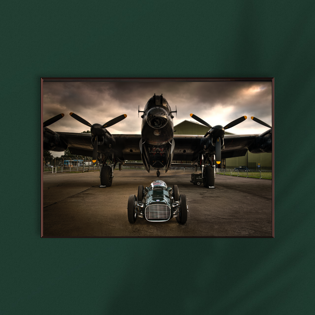 Print of the new Chassis No.IV P15 V16 at RAF Coningsby, next to a Lancaster PA 474, one of only two Lancaster bombers still flying.