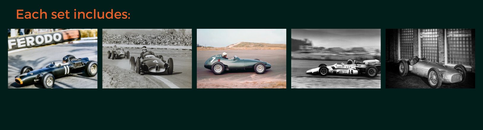 Postcard bundle featuring images from BRM's history as a celebration of our 'The Team That Beat The World' exhibition at the Silverstone Interactive Museum.