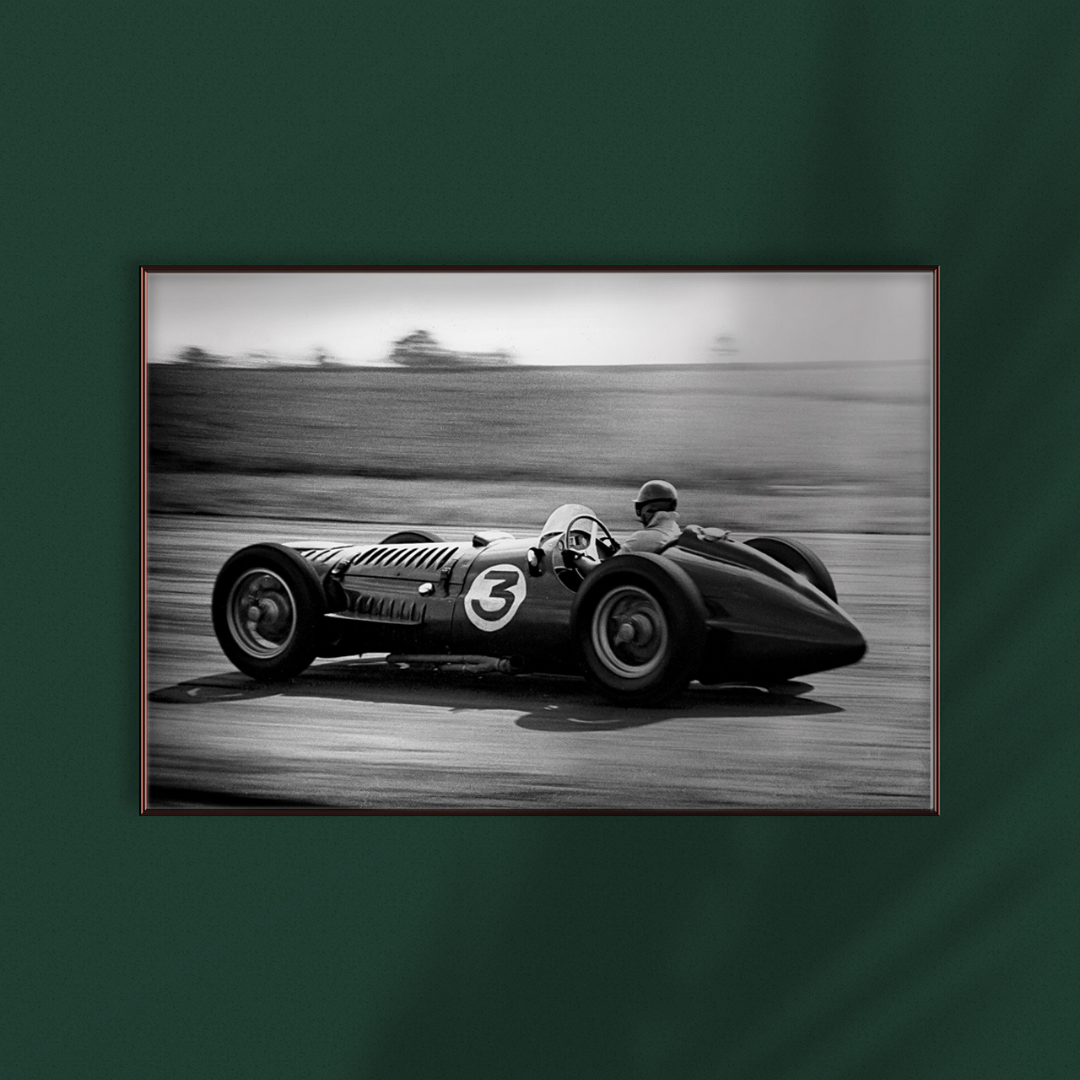 Print of Fangio practising in the V16 at Silverstone in 1953.