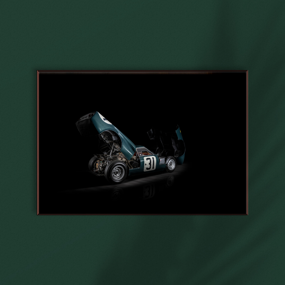 Print of the Rover-BRM, a prototype gas turbine-powered racing car jointly developed in the early 1960s by the British companies Rover and BRM.