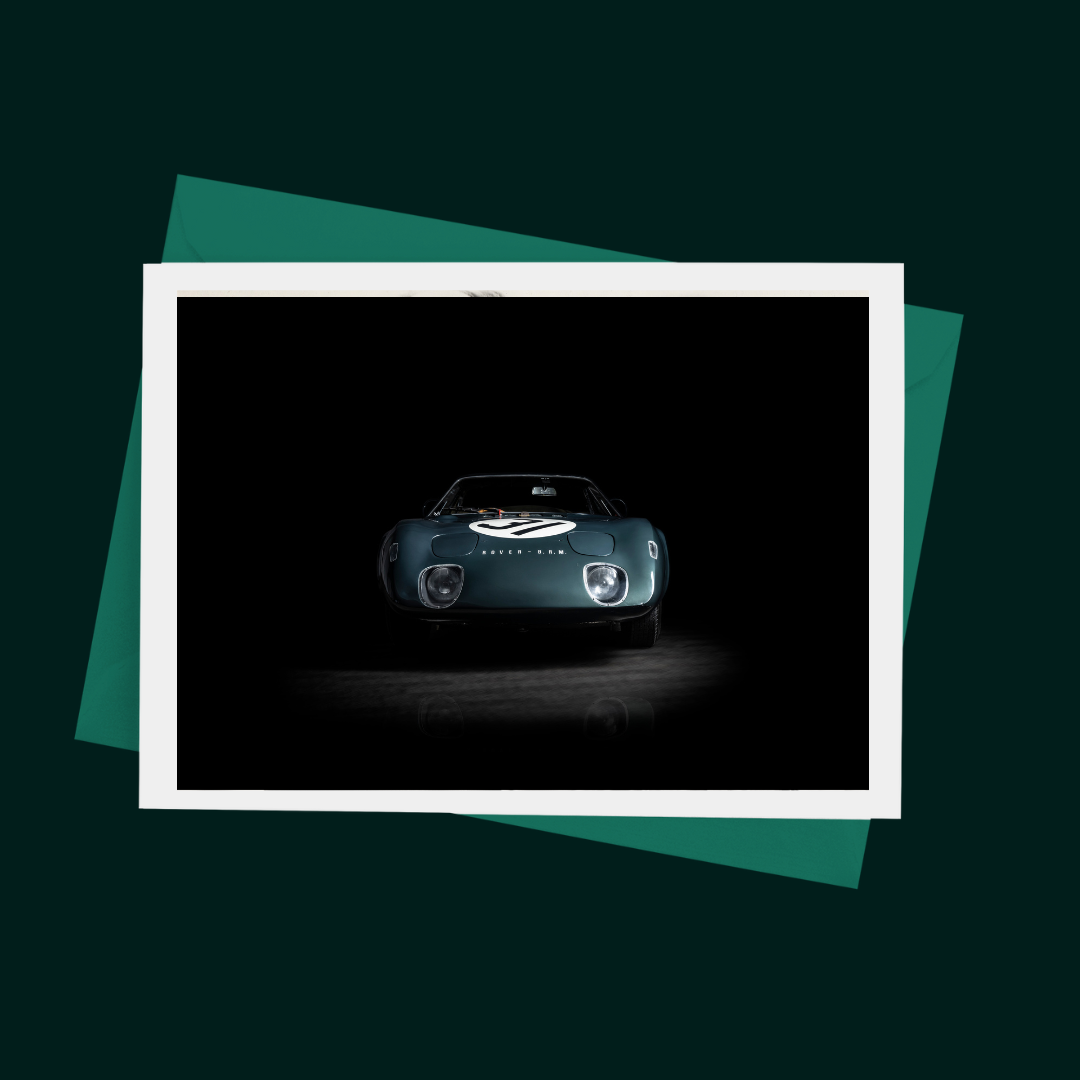 Card bundle featuring five images of the Rover-BRM, a prototype gas turbine-powered racing car jointly developed in the early 1960s by the British companies Rover and BRM.