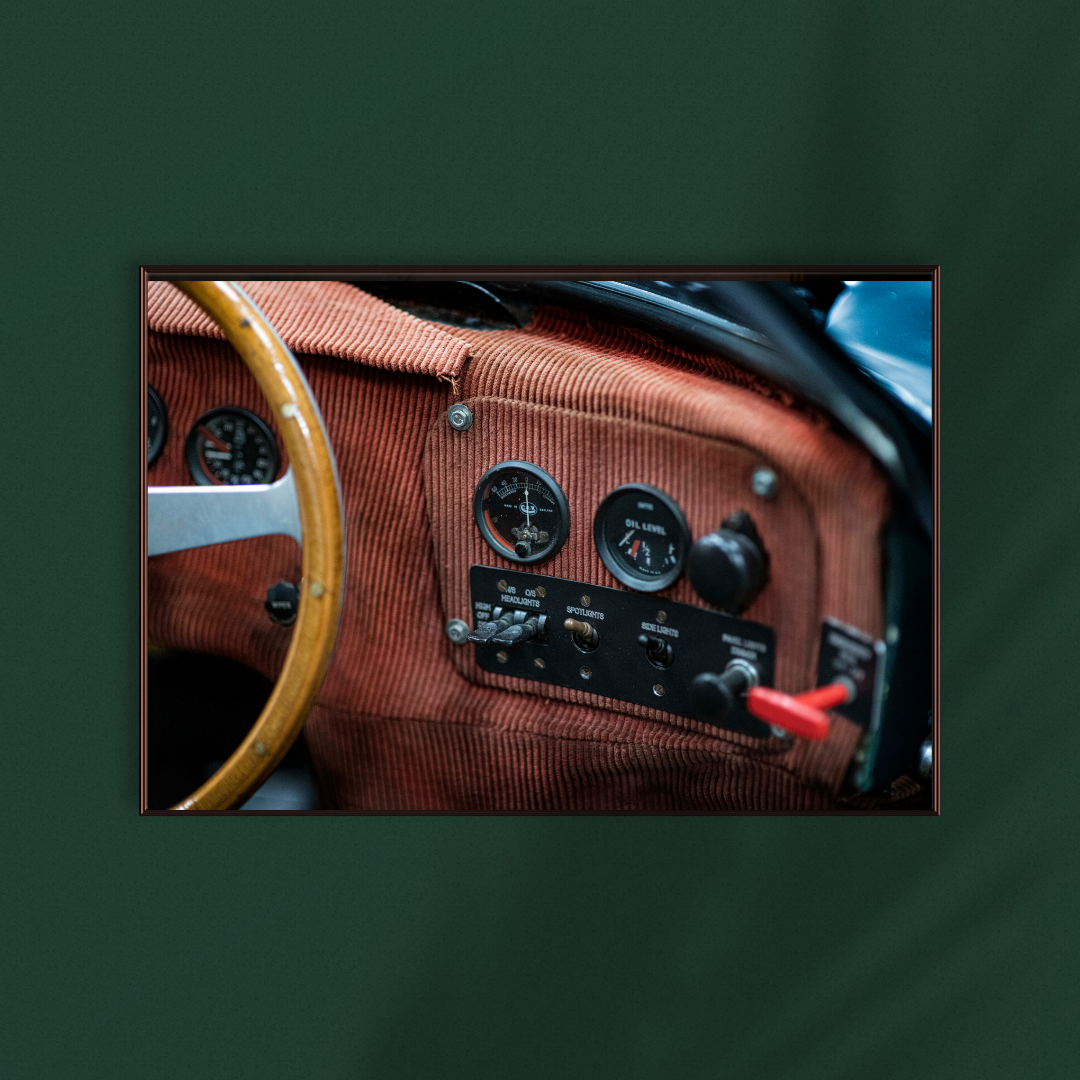 Print of the Rover-BRM's famous corduroy interior, a prototype gas turbine-powered racing car jointly developed in the early 1960s by the British companies Rover and BRM.