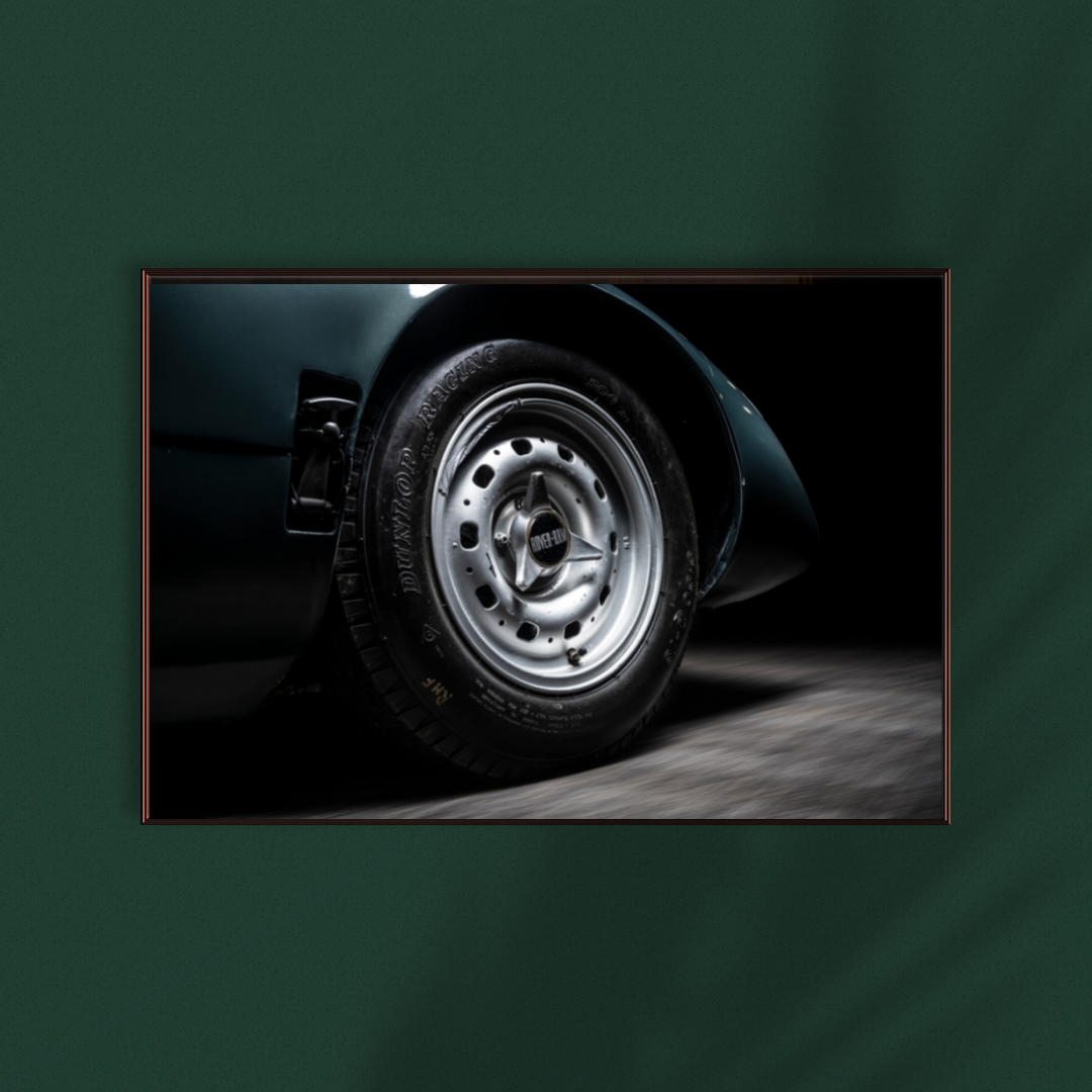 Print of the Rover-BRM's wheel, a prototype gas turbine-powered racing car jointly developed in the early 1960s by the British companies Rover and BRM.